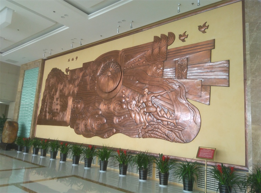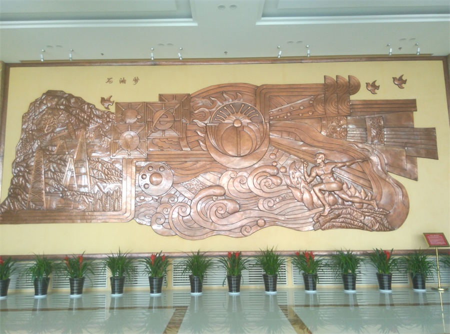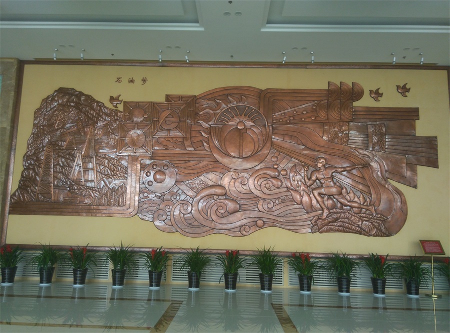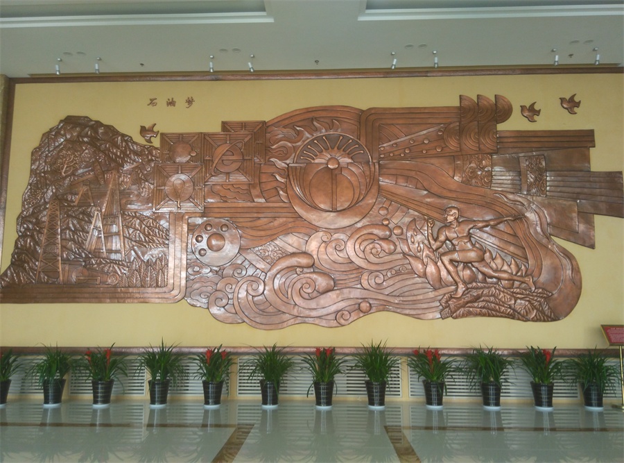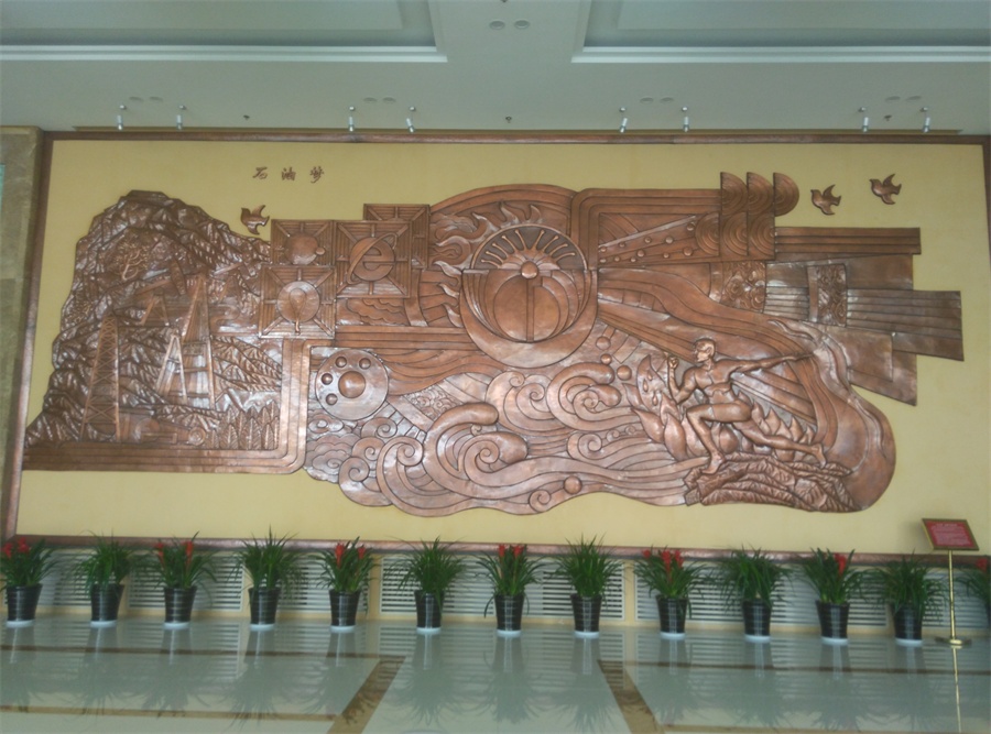 大型鍛銅浮雕——石油夢,于2015年8月正式落成中國石油大學(xué)華東校區(qū)(青島市黃島)。該浮雕,由紫銅板手工鍛造成型。寓意了石油人奮發(fā)進(jìn)取的創(chuàng)業(yè)精神及祖國石油業(yè)的蓬勃發(fā)展。