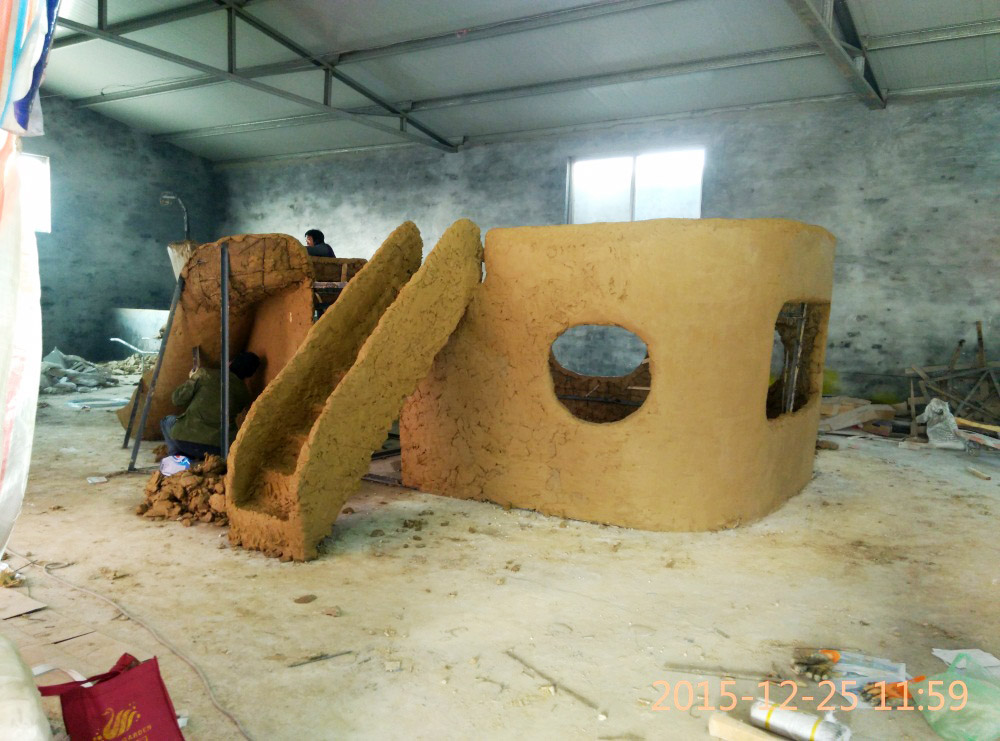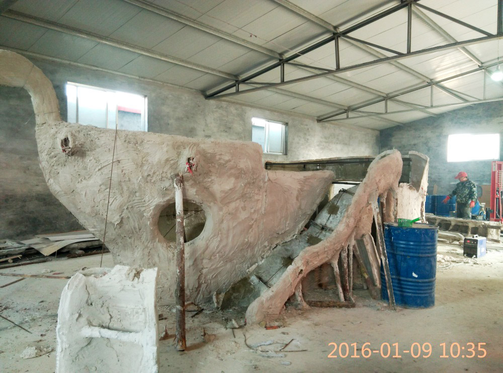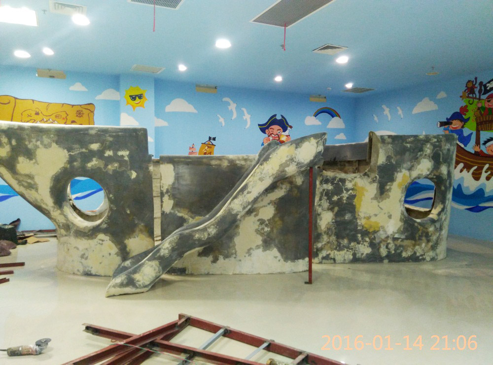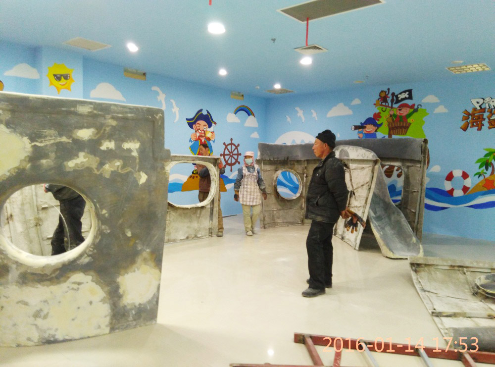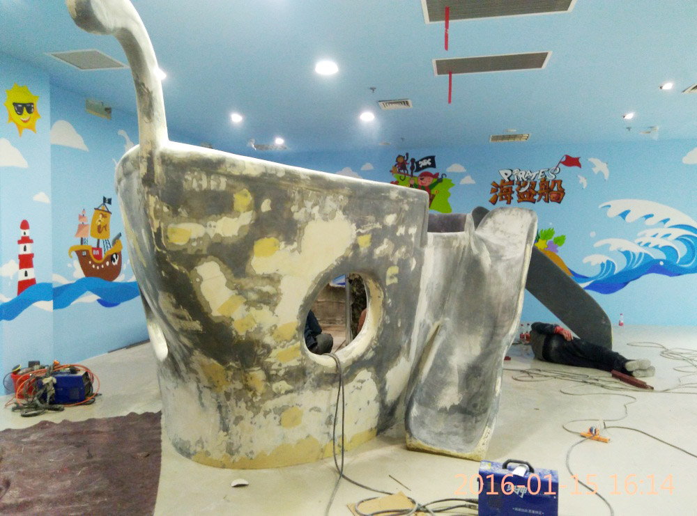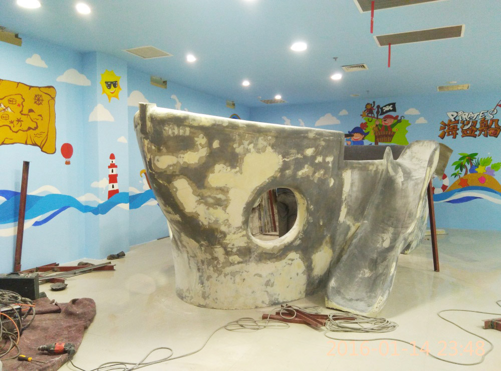 大型玻璃鋼游樂(lè)船雕塑竣工。2016年1月15-1月19日安裝于山東省濱州市黃河五路渤海十路銀座商城黃河店四樓。