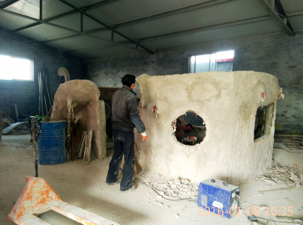 雕塑外形采用玻璃鋼材質(zhì),甲板采用鋼板和玻璃鋼材質(zhì)雙層材質(zhì),內(nèi)置金屬骨架,表面彩繪。游樂(lè)船長(zhǎng)度7.2米,寬度3.2米。