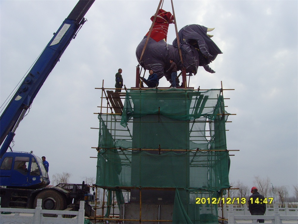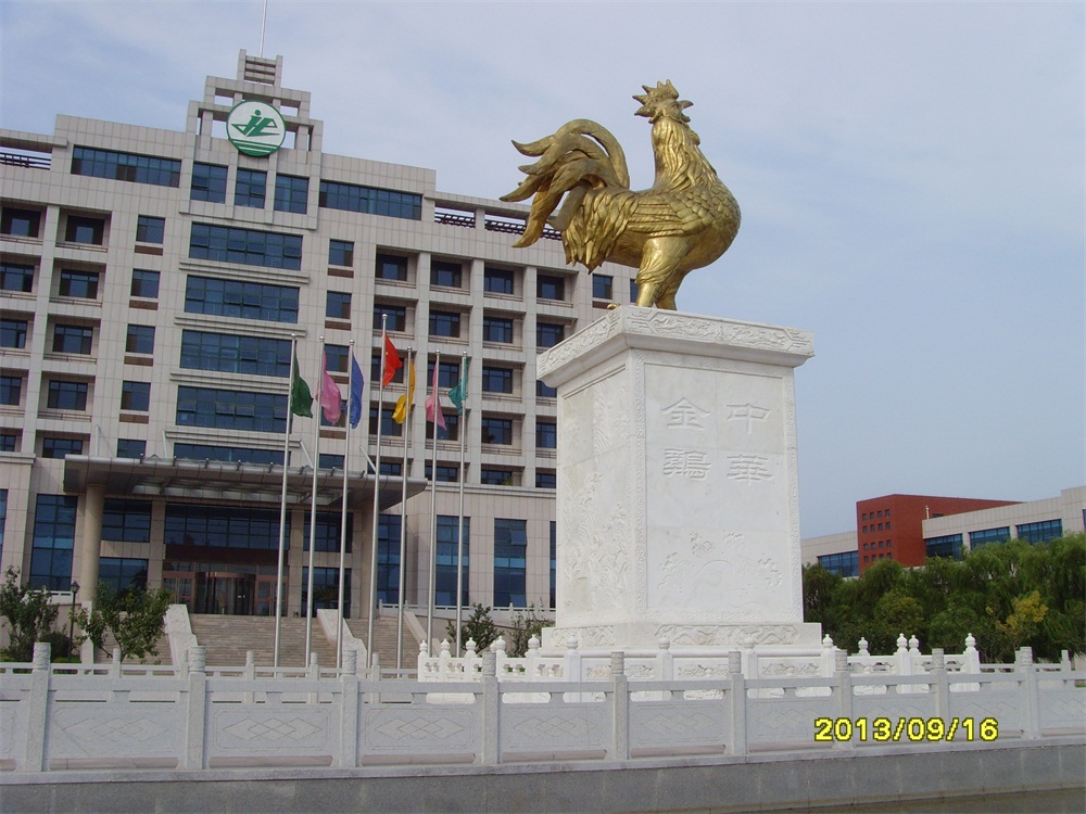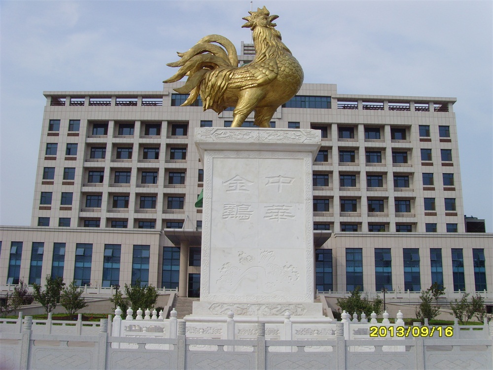 2013年6月,大型鑄銅鎏金雕塑——“金雞雕塑”及漢白玉浮雕落成。安裝于青島市萊西市上海西路青島九聯(lián)集團(tuán)股份有限公司總部。該雕塑工程從2012年5月開始施工,歷時(shí)13個(gè)月。