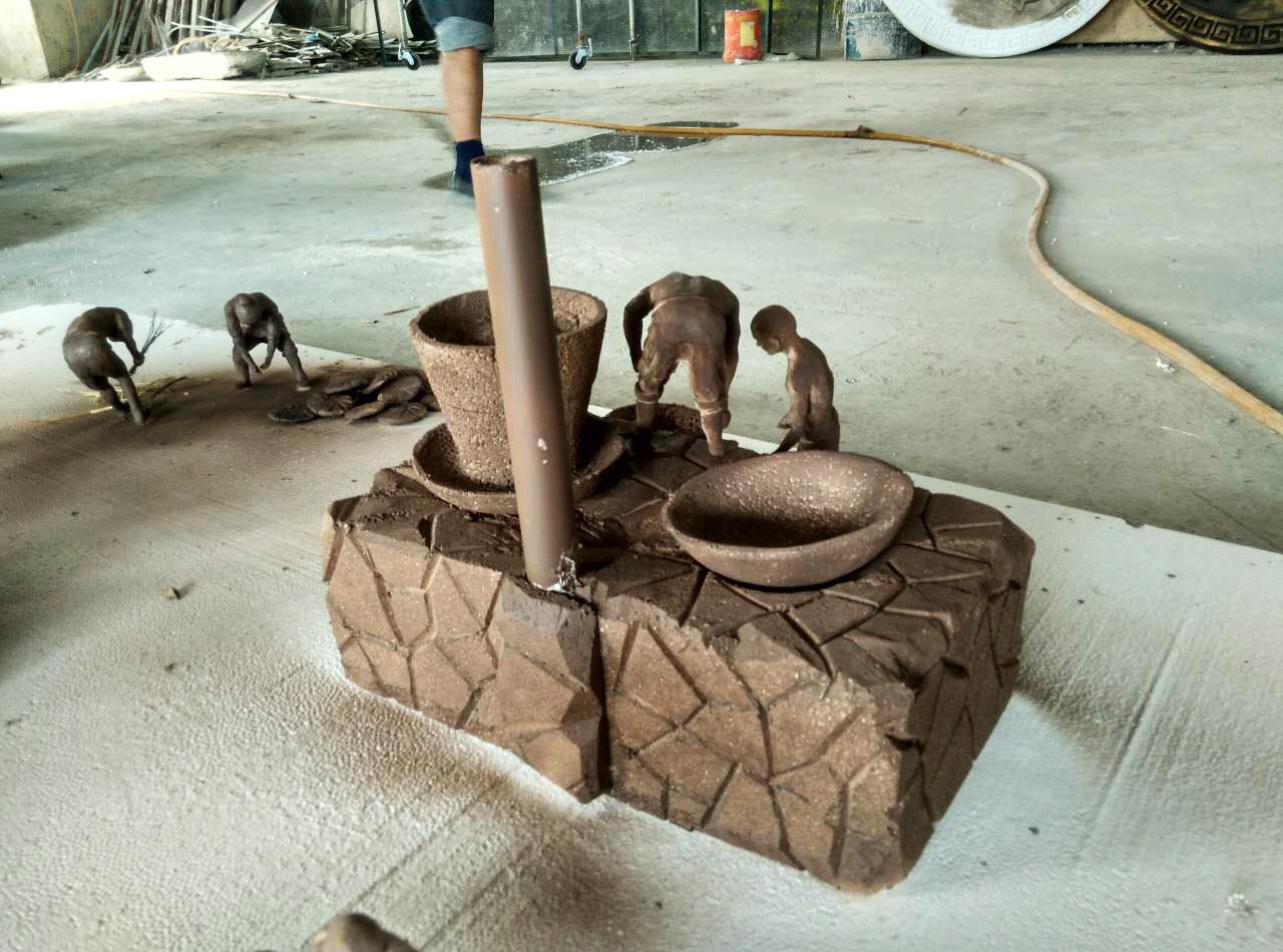 作品簡介:用群雕的形式再現(xiàn)來了中國傳統(tǒng)的釀酒工藝和壓榨花生油工藝。作品中人物材質(zhì)為泥塑,更能傳統(tǒng)、民俗、古樸的風(fēng)格。