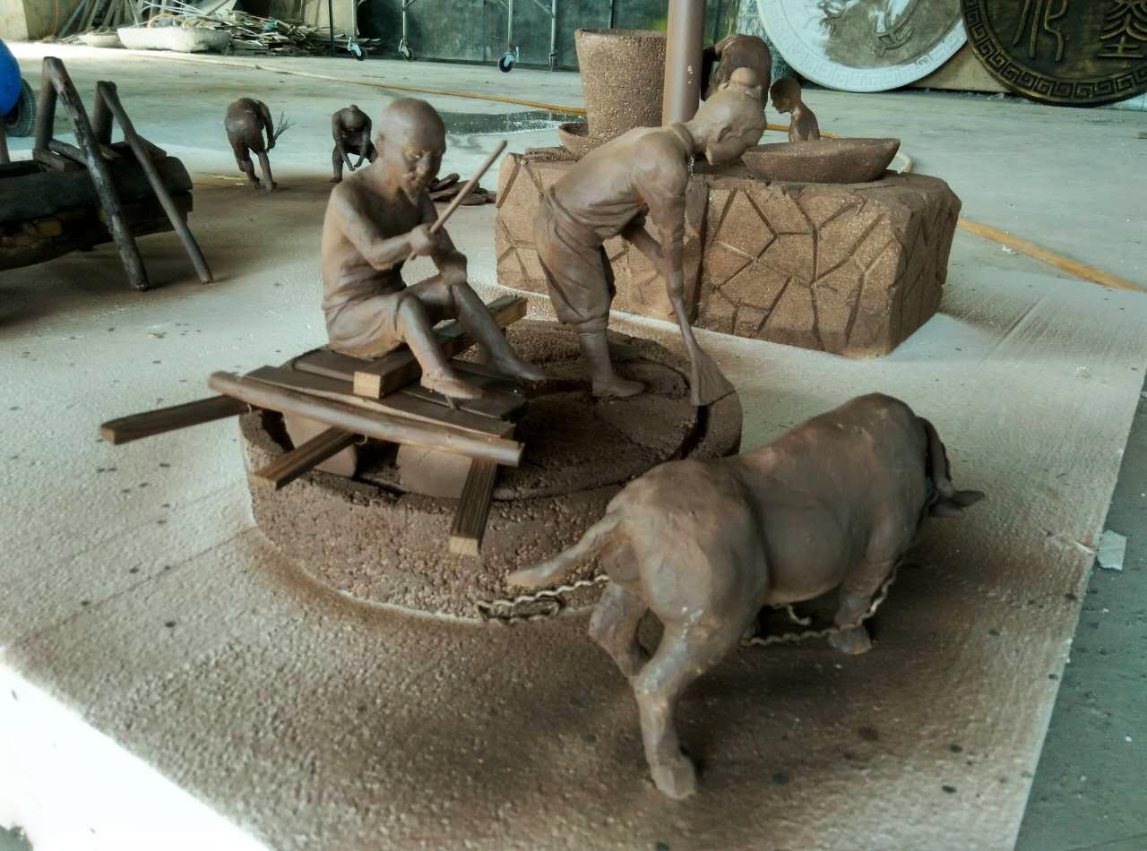 作品名稱:古法釀酒場景式群雕、古法榨油群雕。