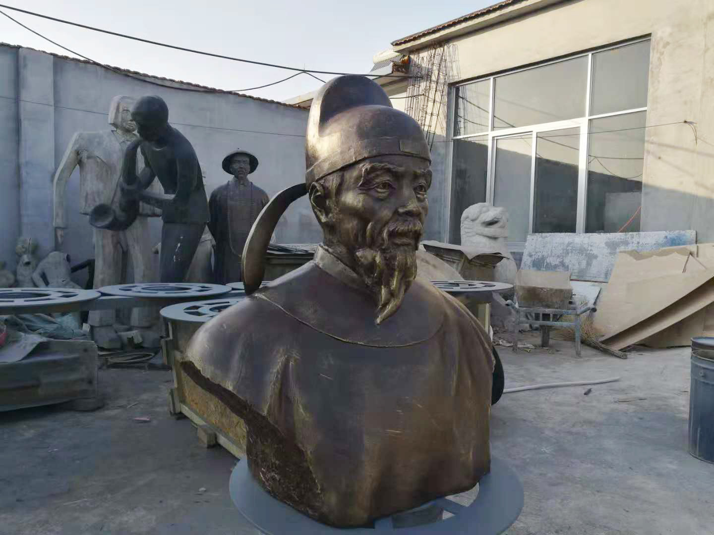 御醫(yī)牛天齊雕像,材質(zhì)為玻璃鋼雕塑,2018年11月安裝于山東省濱州市陽信縣山東牛天啟中醫(yī)藥科技有限公司。