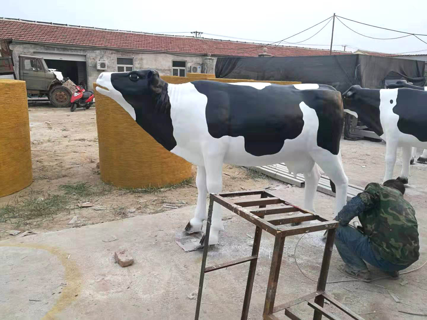 規(guī)格:奶牛雕塑等大,草垛雕塑直徑1.5米,高1.5米。