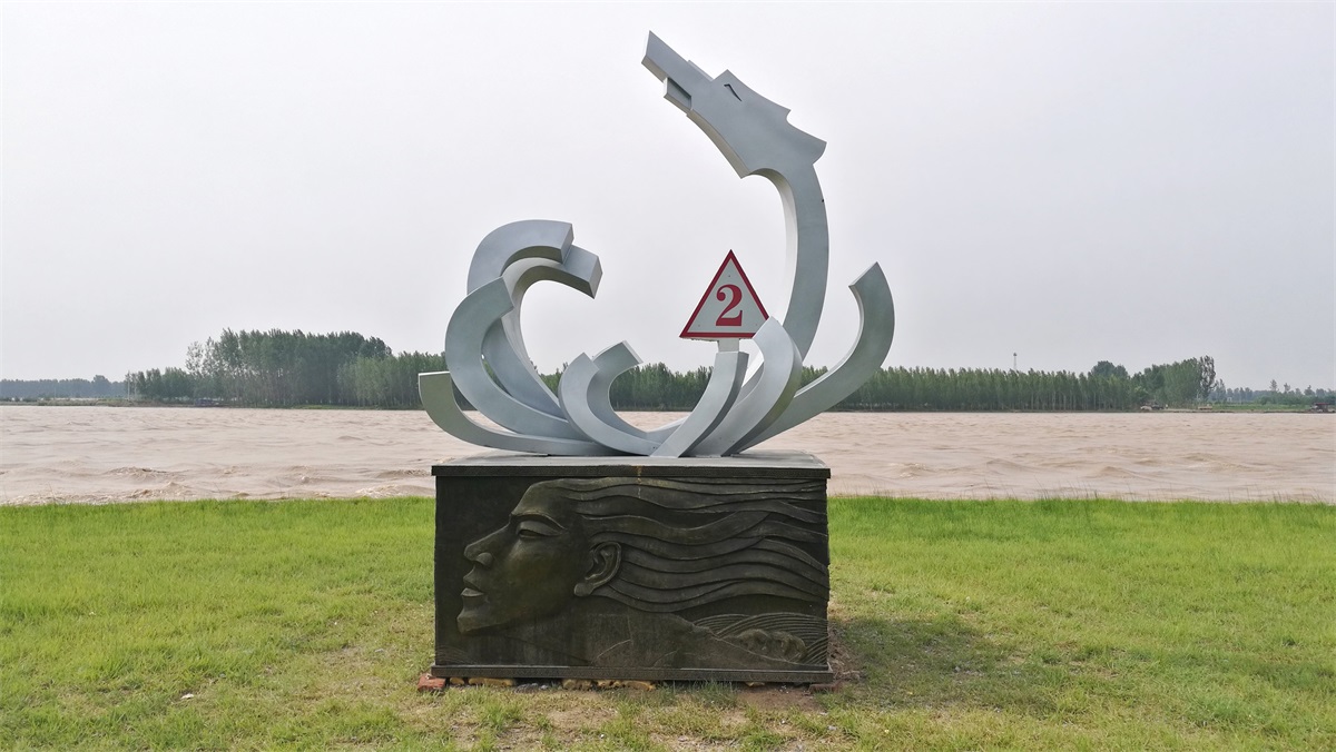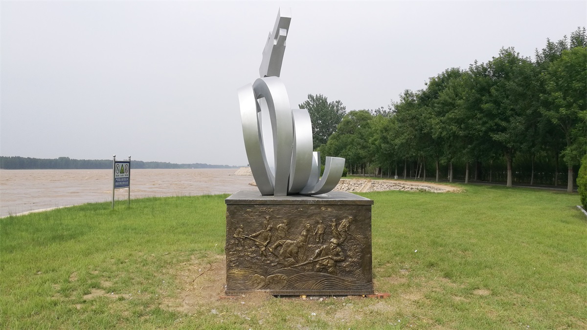 “黃河龍”象征黃河母親哺育中華民族生生不息,奮勇向前;也象征從古至今中華民族不屈不撓同黃河水患斗爭(zhēng)的偉大精神;雕塑各分支代表黃河支流匯集,驚濤駭浪,氣勢(shì)雄渾。浮雕部分以黃河河道全貌貫穿四面,配以古今抗洪搶險(xiǎn)的偉大事跡。