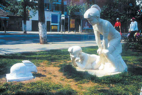 石材雕塑展示。石雕,指用各種可雕、可刻的石頭,創(chuàng)造出具有一定空間的可視、可觸的藝術(shù)形象,借以反映社會(huì)生活、表達(dá)藝術(shù)家的審美感受、審美情感、審美理想的藝術(shù)。常用的石材有花崗石、大理石、青石、砂石等。石材質(zhì)量堅(jiān)硬耐風(fēng)化,是大型紀(jì)念性雕塑的主要材料。